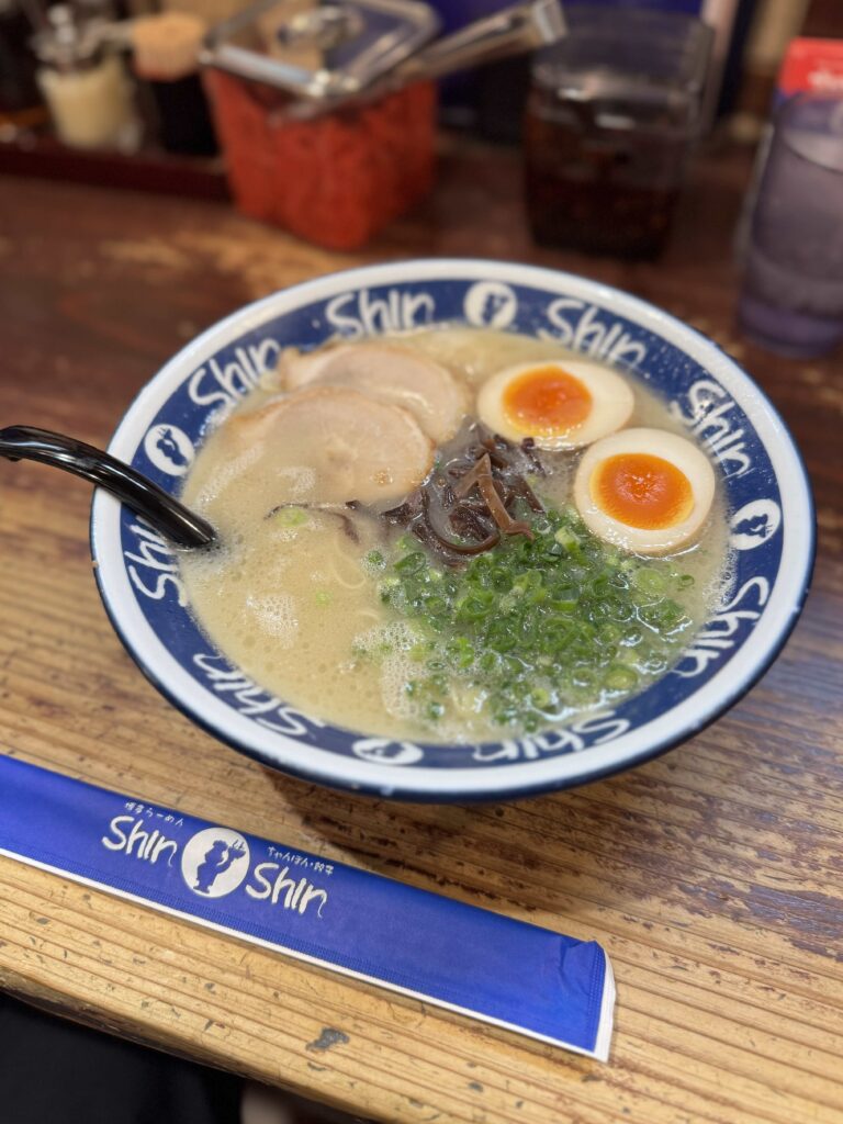 豚骨ラーメン苦手なのにここのは美味しく食べれました。Shin-Shinという有名店ですが長蛇の列・・