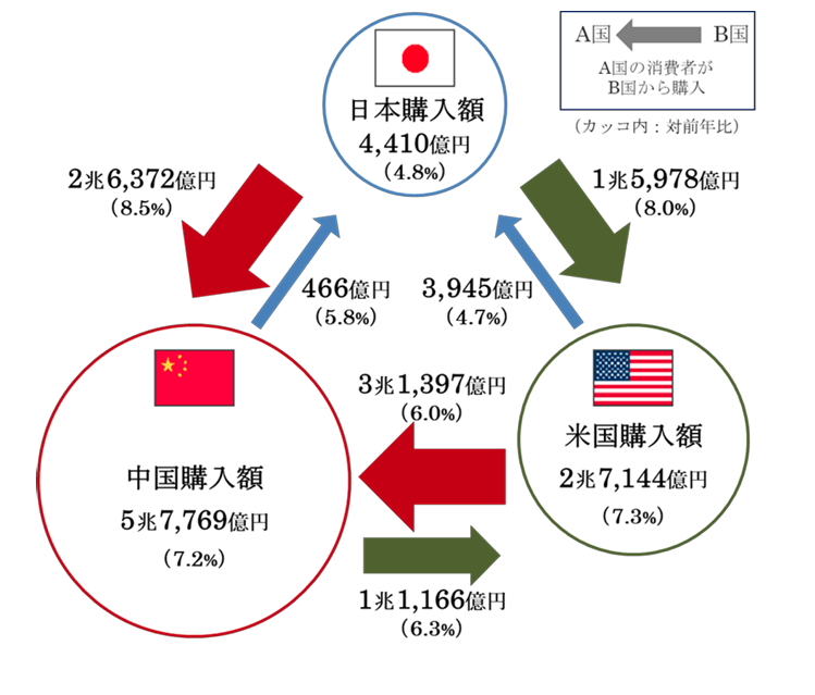 そして注目の、2024年における日本・米国・中国の3か国間における越境ECの市場規模は、どの国間でも増加しました。