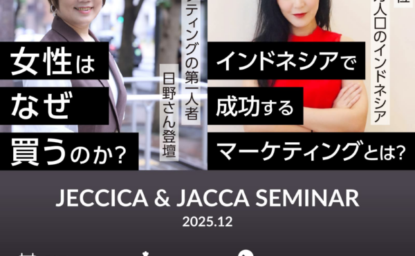 2025年11月29日イベント情報JACCA広報 JACCA第31回セミナー:JACCA&JECCICA共催12月セミナー 女性マーケティングの第一人者 日野さん登壇 女性はなぜ買うのか? & 世界第4位 2億7,000万人口のインドネシア TikTok Shopのリアル インドネシアのEC事情 成功するマーケティングとは?JECCICA&JACCA共催12月セミナー 女性市場 × インドネシア市場 2026年の勝ち筋はここにある! 女性顧客のインサイトを掴み、新たな市場を獲得する&インドネシアのEC事情 – 不思議なインドネシ […]