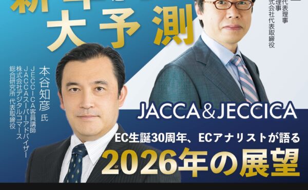 2025年12月25日イベント情報JACCA広報 JACCA&JECCICA2026年1月セミナー&新年会 恒例!不思議とよく当たる?!新年大予測 2026年過激編とEC生誕30周年、ECアナリストが語る2026年の展望JACCA&JECCICA2026年1月セミナー&新年会 恒例!不思議とよく当たる?!新年大予測 2026年過激編とEC生誕30周年、ECアナリストが語る2026年の展望 2026年の日本EC・オムニチャネル市場の大転換 […]